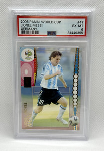 The Lionel Messi 2006 Panini World Cup #47 Base card in Raw condition has moved down -$90.00 (-25.7%) in the last 30 days and was last sold for $260.00 .