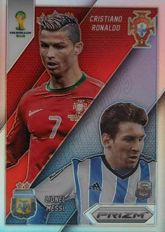 2014 PRIZM WORLD CUP MATCHUPS CRISTIANO RONALDO LIONEL MESSI SILVER HOLO SP #19