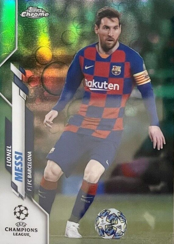 2019-2020 Topps Chrome UEFA Lionel Messi #1 Green Bubbles SSP