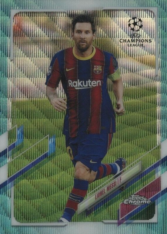 2020-21 Topps Chrome UEFA Lionel Messi Aqua Wave Refractor #100/199 Barcelona