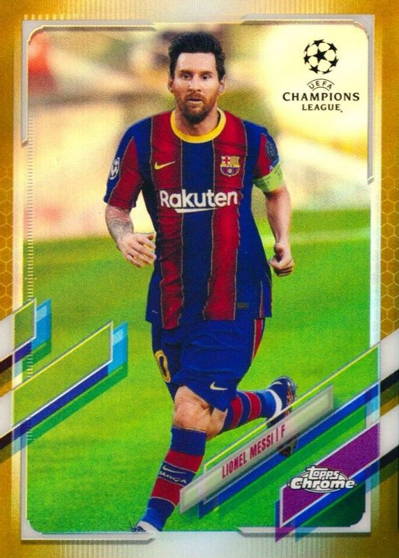 The Lionel Messi 2020 Topps Chrome UEFA Champions League #1 Gold Refractor /50 card in Raw condition has not changed in price in the last 30 days and was last sold for $229.00 .
