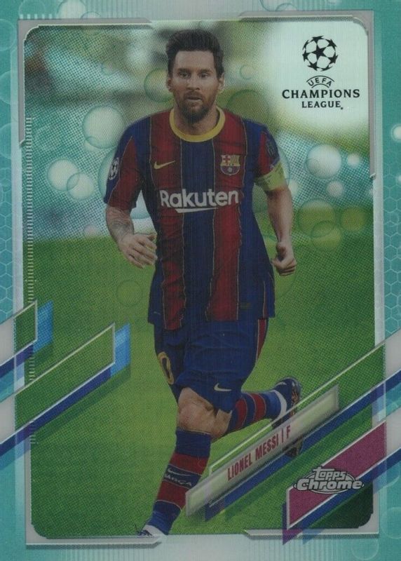 Lionel Messi 2020 Topps Chrome UEFA Champions League #1 Neon Green Bubbles Refractor RAW Price Guide