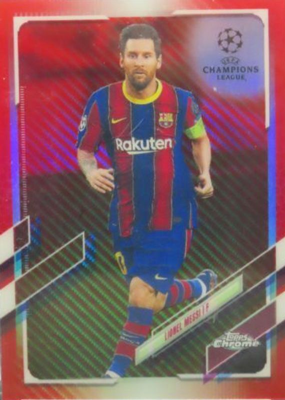 Lionel Messi 2020 Topps Chrome UEFA Champions League #1 Red Carbon Fiber Refractor RAW Price Guide