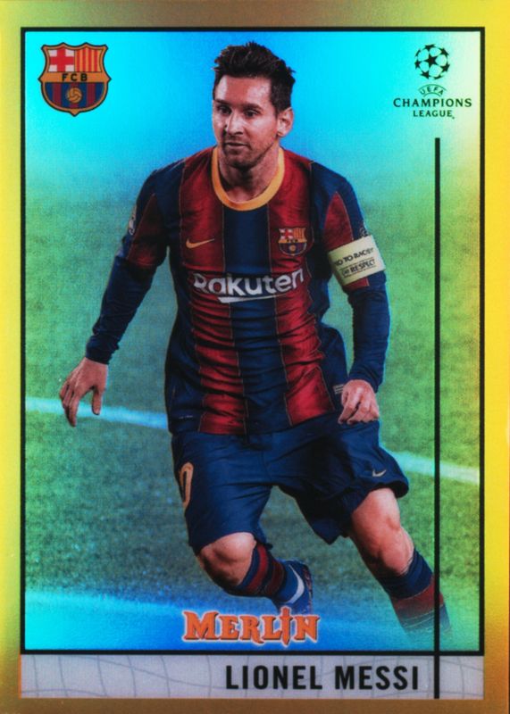 Best Prices Available For Sale of Lionel Messi 2020 Topps Merlin Chrome UEFA Champions League #1 Gold Refractor /50