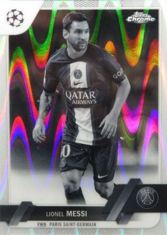 Lionel Messi 2022 Topps Chrome UEFA Club Competitions #1 Black & White RayWave Refractor RAW Price Guide