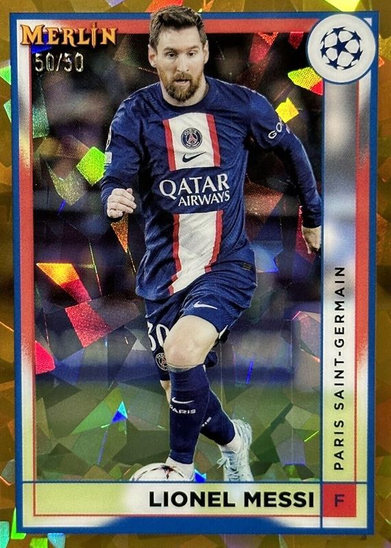 2022-23 Topps Chrome Merlin UCL PSG Lionel Messi Gold Atomic Refractor #50/50