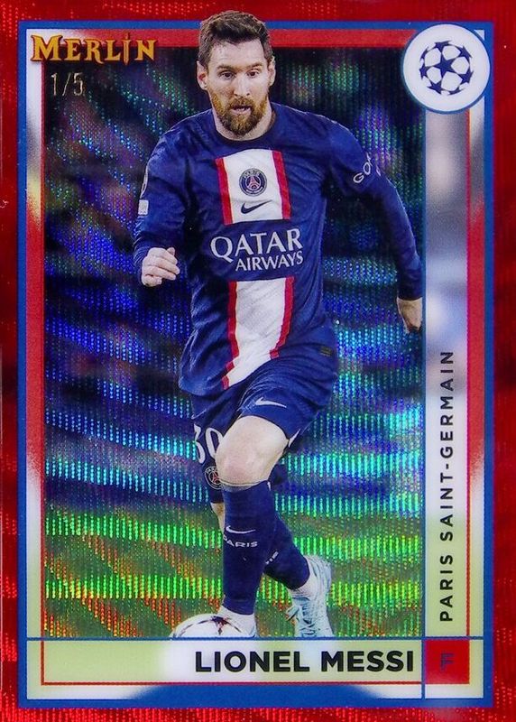 Recent Sales of Lionel Messi 2022 Topps Merlin Chrome UEFA Club Competitions #104 Red Wave Refractor /5 Raw