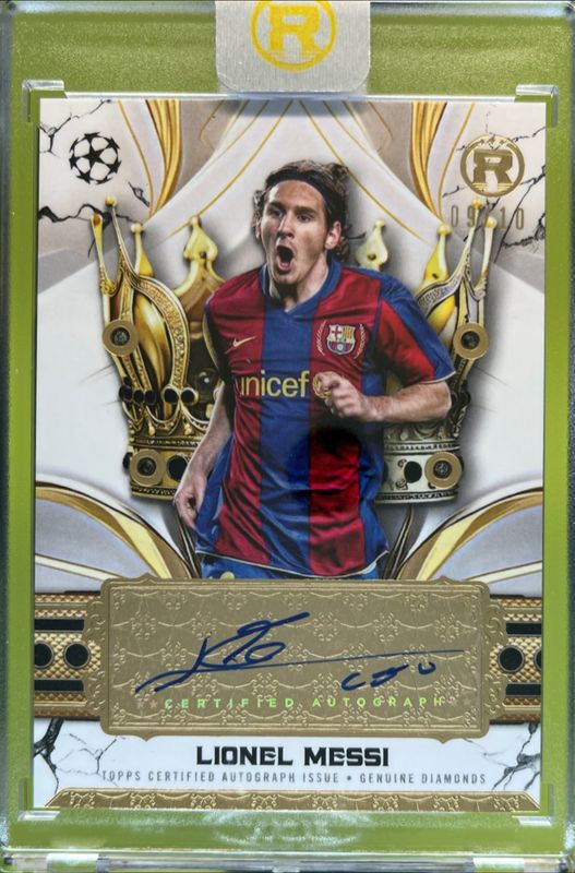 Lionel Messi 2024 Topps Reverence UEFA Club Competitions #CLAR-LM Crowned Legend Autographed Jewel Relics - Black /10 RAW Price Guide