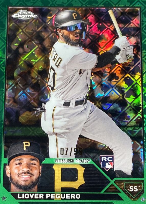 2023 Topps Chrome Liover Peguero Rookie Green #'d /99 + Logofractor /250 Pirates