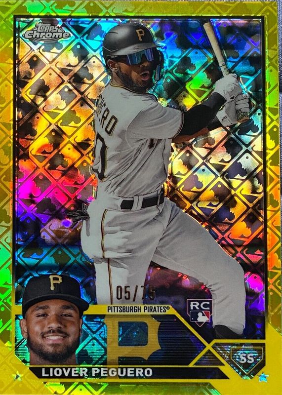 2023 TOPPS CHROME LOGOFRACTOR YELLOW /75 ROOKIE LIOVER PEGUERO PIRATES