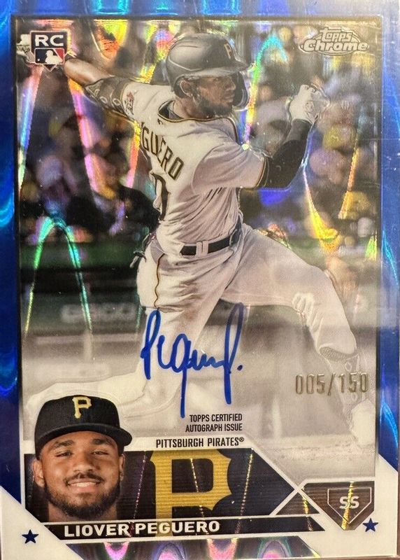 2023 Topps Chrome - Rookie Autographs Liover Peguero Blue RayWave /150 - Pirates