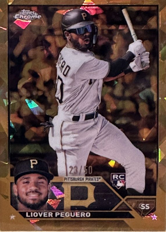 2023 Topps Chrome Sapphire Liover Peguero Gold #42/50 RC Pittsburgh Pirates 🔥