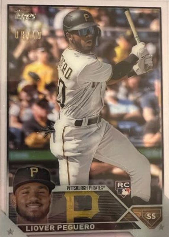 This card is 1 of 18 Liover Peguero's card variations in the 2023 Topps set being tracked by Sports Card Investor, including Base, Gold Foil, Rainbow Foil, Royal Blue, and Gold /2023.