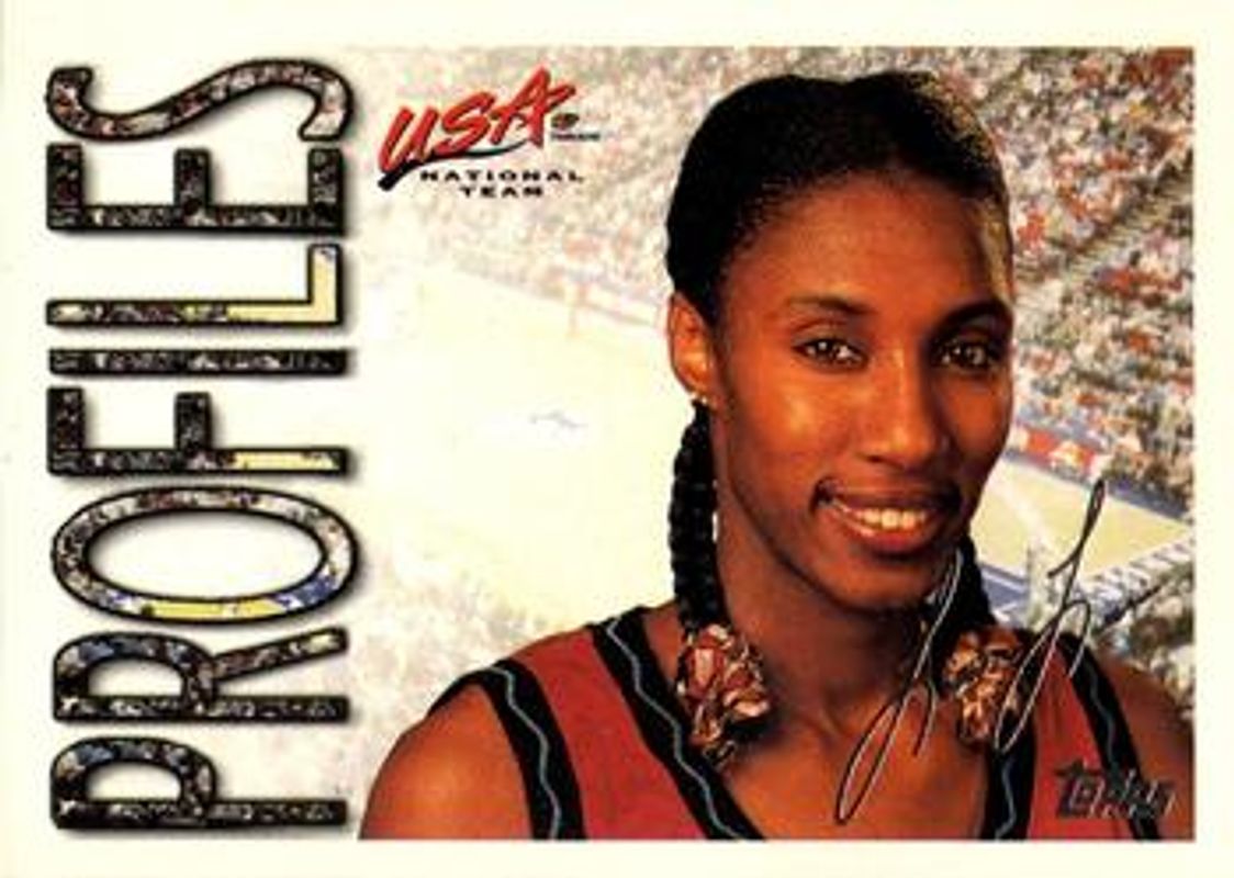Other popular players in the 1996 Topps USA Women's National Team set include Jennifer Azzi, Sheryl Swoopes, Rebecca Lobo, Dawn Staley, and Ruthie Bolton.