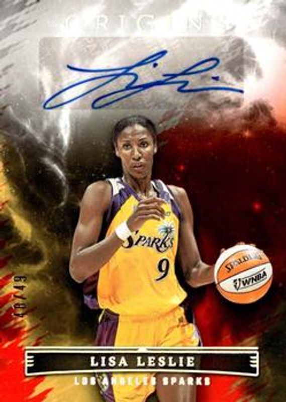 The Lisa Leslie 2023 Origins WNBA #OA-LLS Origins Autographs - Red /49 card is 1 of 29 Lisa Leslie's card variations in the 2023 Origins WNBA set being tracked by Sports Card Investor, including Base, Rainbow, Red, Blue /75, and Teal /35.