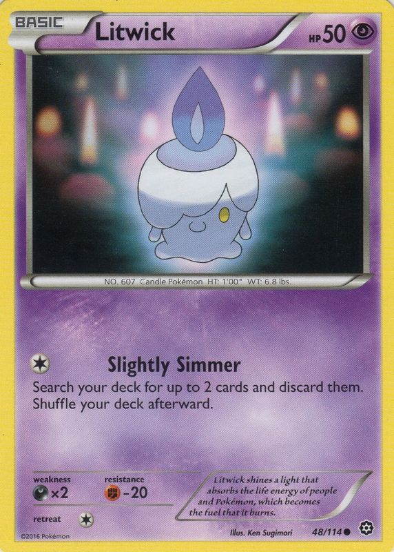 The Litwick 2016 XY: Steam Siege #048/114 Base card in Raw TCG (Lightly Played) condition has moved down -$0.57 (-33.7%) in the last 30 days and was last sold for $1.12 .