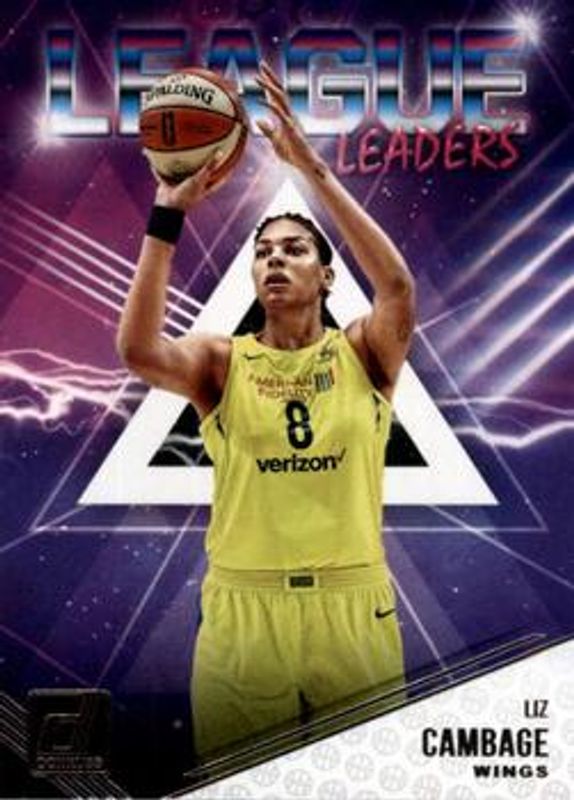 The Liz Cambage 2019 Donruss WNBA #1 League Leaders card is 1 of 24 Liz Cambage's card variations in the 2019 Donruss WNBA set being tracked by Sports Card Investor, including Base, Optic, Optic Holo, Silver Press Proof /199, and Purple Press Proof /99.