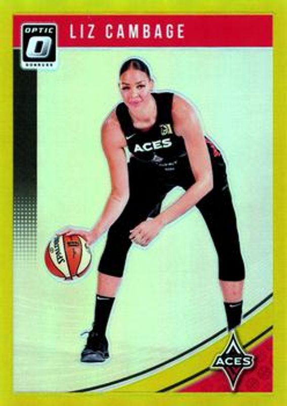The Liz Cambage 2019 Donruss WNBA #76 Optic Gold /10 card is 1 of 24 Liz Cambage's card variations in the 2019 Donruss WNBA set being tracked by Sports Card Investor, including Base, Optic, Optic Holo, Silver Press Proof /199, and Purple Press Proof /99.