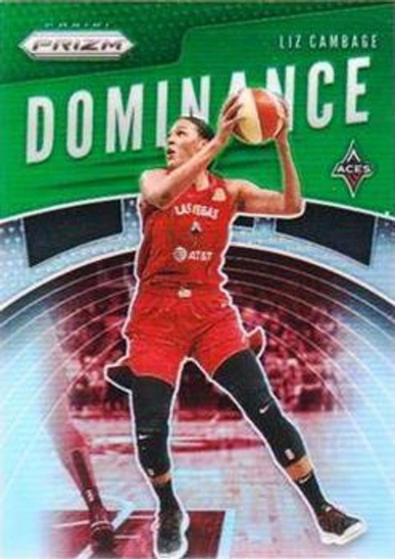 The Liz Cambage 2020 Prizm WNBA #4 Dominance - Green card is 1 of 67 Liz Cambage's card variations in the 2020 Prizm WNBA set being tracked by Sports Card Investor, including Base, Green, Green Ice, Hyper, and Ice.