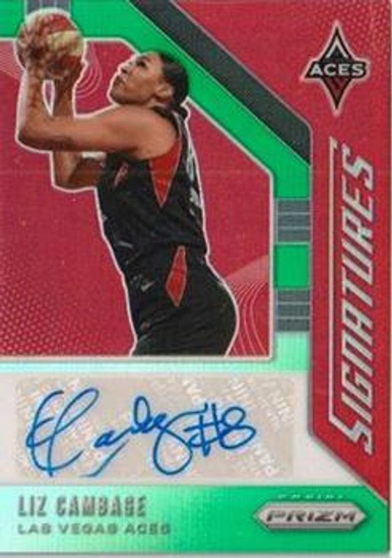 The Liz Cambage 2020 Prizm WNBA #SG-LCB Signatures - Green card is 1 of 67 Liz Cambage's card variations in the 2020 Prizm WNBA set being tracked by Sports Card Investor, including Base, Green, Green Ice, Hyper, and Ice.