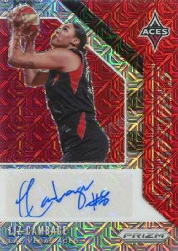 The Liz Cambage 2020 Prizm WNBA #SG-LCB Signatures - Mojo /25 card is 1 of 67 Liz Cambage's card variations in the 2020 Prizm WNBA set being tracked by Sports Card Investor, including Base, Green, Green Ice, Hyper, and Ice.