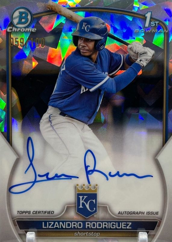 The Lizandro Rodriguez 2023 Bowman #CPA-LRZ Chrome Prospect Auto - Atomic Refractor /100 (1st) card in Raw condition has not changed in price in the last 30 days and was last sold for $4.25 .