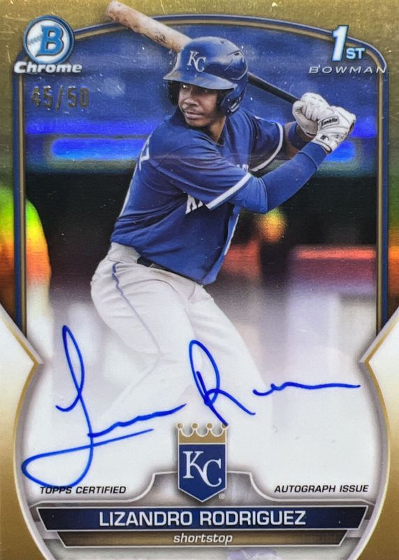 2023 Bowman Chrome Lizandro Rodriguez 1st True Gold Auto 45/50 Kansas City