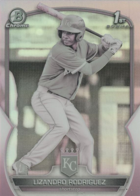 This card is 1 of 49 Lizandro Rodriguez's card variations in the 2023 Bowman set being tracked by Sports Card Investor, including Chrome Prospects (1st), Chrome Prospects - Atomic Refractor (1st), Chrome Prospects - Lunar Glow Refractor (1st), Chrome Prospects - Refractor /499 (1st), and Chrome Prospects - Lava Refractor /399 (1st).