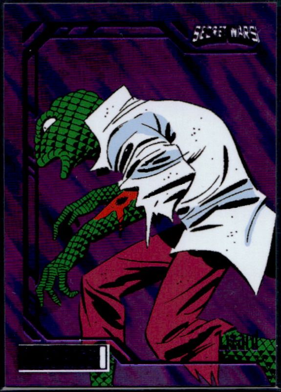 The Lizard 2024 Upper Deck Marvel Allegiance Secret Wars #46 Purple Boxes /99 card is 1 of 52 Lizard's card variations in the 2024 Upper Deck Marvel Allegiance Secret Wars set being tracked by Sports Card Investor, including #78 Base, #15 Base, #46 Base, #78 Foilboard, and #46 Foilboard.