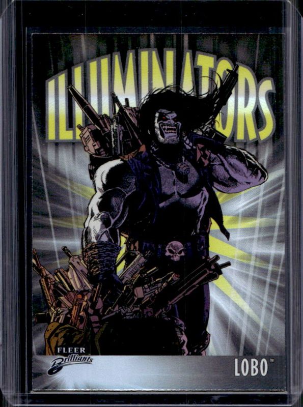 The Lobo 2025 Fleer Brilliants Superman #I-2 Illuminators card is 1 of 14 Lobo's card variations in the 2025 Fleer Brilliants Superman set being tracked by Sports Card Investor, including Base, Blue, Purple, Red, and Yellow.