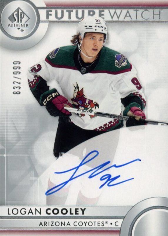 This card is 1 of 3 Logan Cooley's card variations in the 2023 SP Authentic set being tracked by Sports Card Investor, including Future Watch Auto - Mystery Black, and Future Watch Auto - Inscriptions /50.
