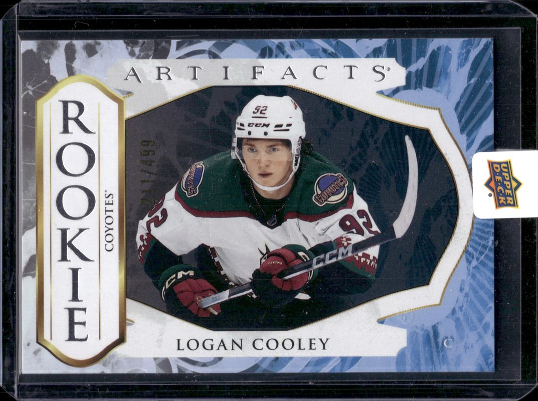 The Logan Cooley 2023 Upper Deck Artifacts #SP4 Horizontal Photo Variants Redemptions /499 Rookie card is 1 of 16 Logan Cooley's card variations in the 2023 Upper Deck Artifacts set being tracked by Sports Card Investor, including Base /999, Emerald /99, Retro Rookies Redemptions /999, Rookie Redemptions /999, and Material Gold Redemption /399.