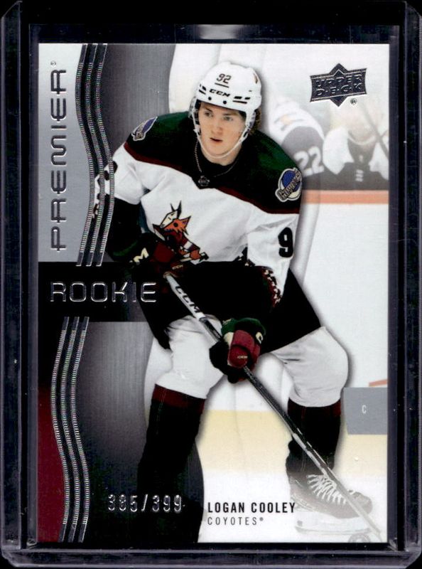 The Logan Cooley 2023 Upper Deck Premier #140 Base /399 Rookie card is 1 of 41 Logan Cooley's card variations in the 2023 Upper Deck Premier set being tracked by Sports Card Investor, including Bronze /199, Gold /65, Ruby /49, Rose Gold /25, and Fight Strap /15.