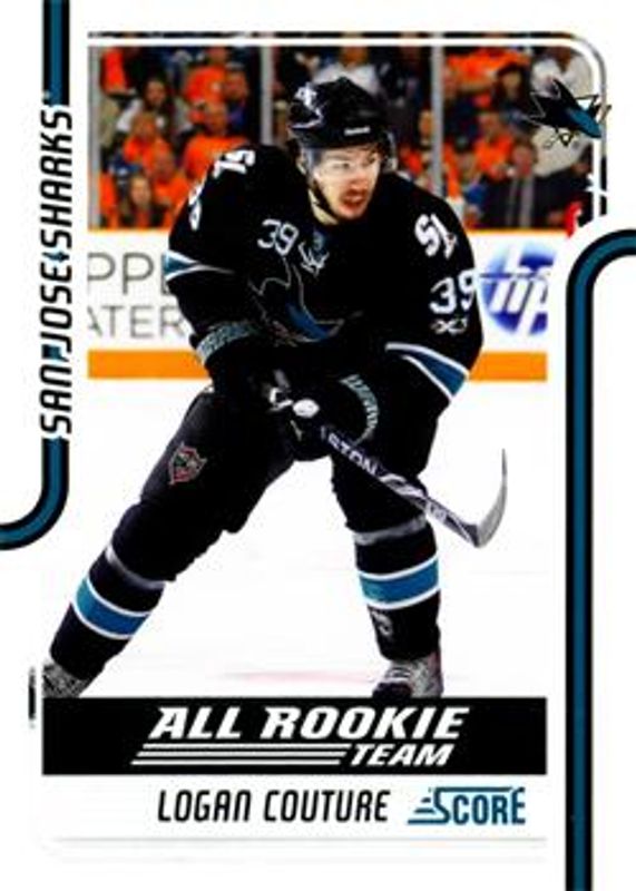The Logan Couture 2011 Score #386 Glossy card is 1 of 10 Logan Couture's card variations in the 2011 Score set being tracked by Sports Card Investor, including #18 Base, #386 Base, #386 Black Ice, #18 Black Ice, and #18 Glossy.