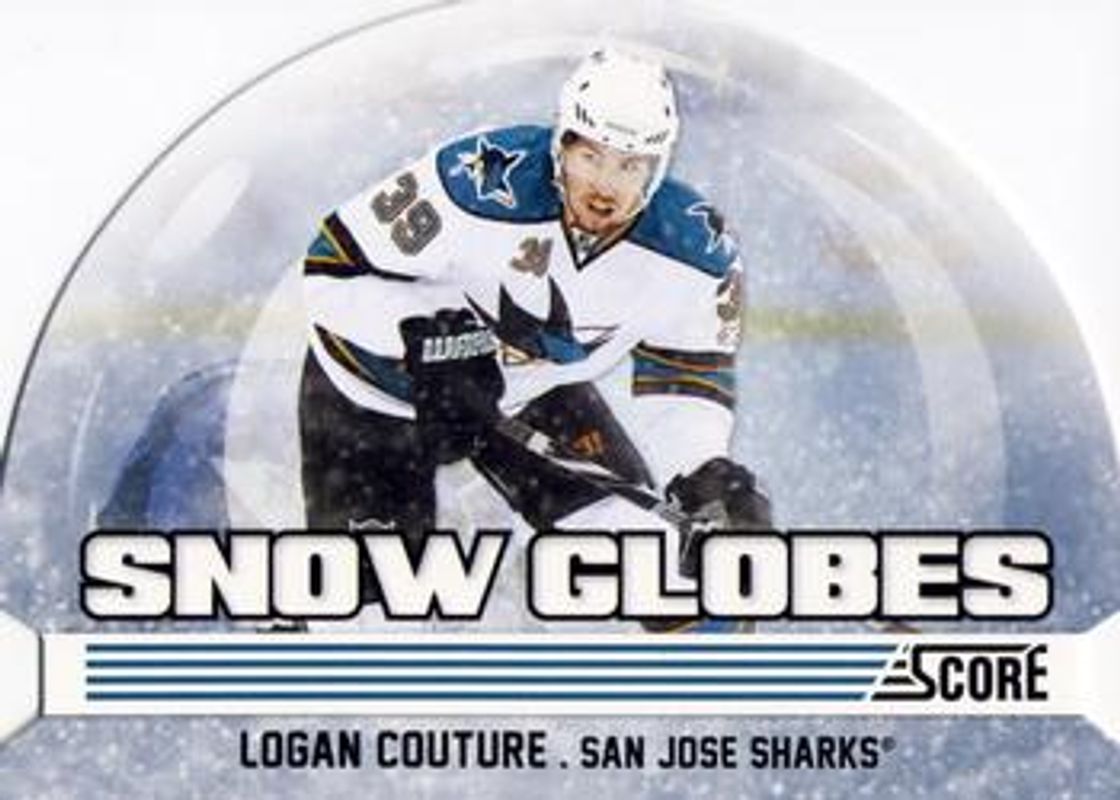 The Logan Couture 2011 Score #10 Snow Globe Die Cuts card is 1 of 10 Logan Couture's card variations in the 2011 Score set being tracked by Sports Card Investor, including #18 Base, #386 Base, #386 Black Ice, #18 Black Ice, and #386 Glossy.