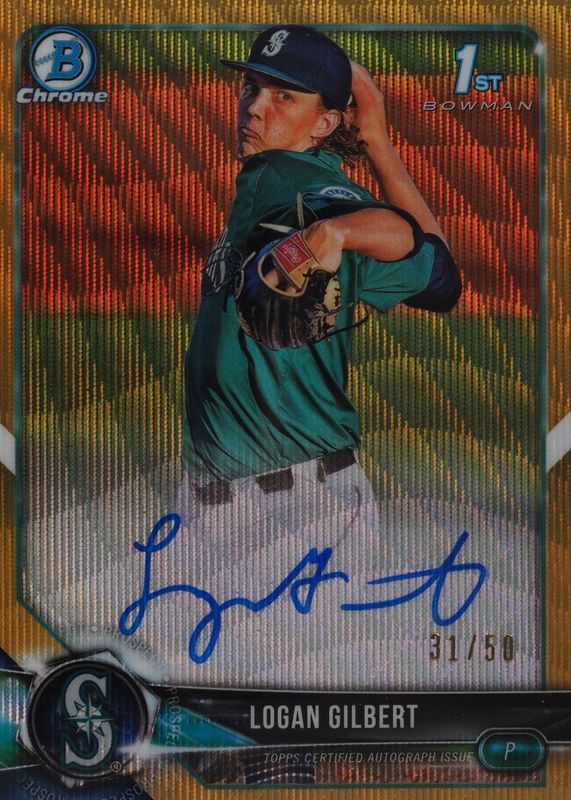 Logan Gilbert 2018 Bowman Draft #CDA-LG Chrome DP Auto - Gold Wave Refractor /50 (1st) RAW Price Guide