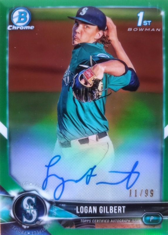 2018 Bowman Chrome Draft LOGAN GILBERT Green Refractor Auto #13/99 SP Colormatch
