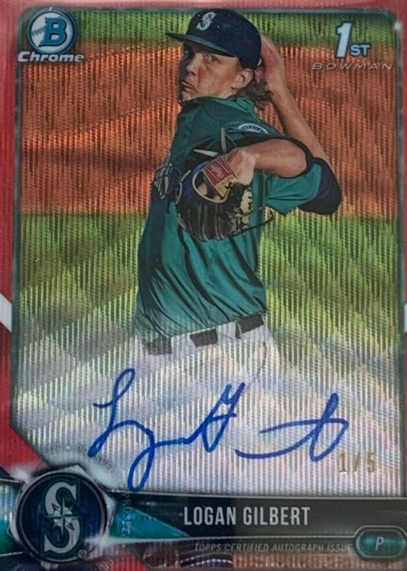 Logan Gilbert 2018 Bowman Draft #CDA-LG Chrome DP Auto - Red Wave Refractor /5 (1st) RAW Price Guide