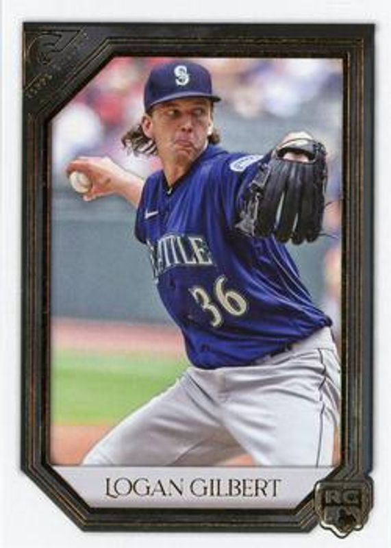 The Logan Gilbert 2021 Topps Gallery #176 Base Rookie card is 1 of 21 Logan Gilbert's card variations in the 2021 Topps Gallery set being tracked by Sports Card Investor, including Printer Proof, Rainbow Foil, Private Issue /250, Green /125, and Green Pattern /99.
