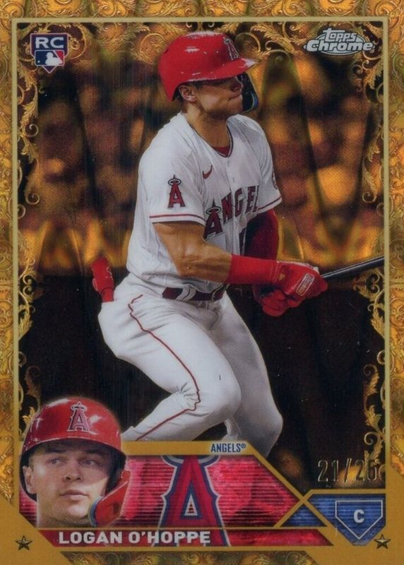 This card is 1 of 6 Logan O'Hoppe's card variations in the 2023 Topps Gilded Collection set being tracked by Sports Card Investor, including Base /99, Wave Gold Etch Refractor /75, Mini-Diamond Gold Etch Refractor /50, Lava Gold Etch Refractor /10, and Superfractor /1.