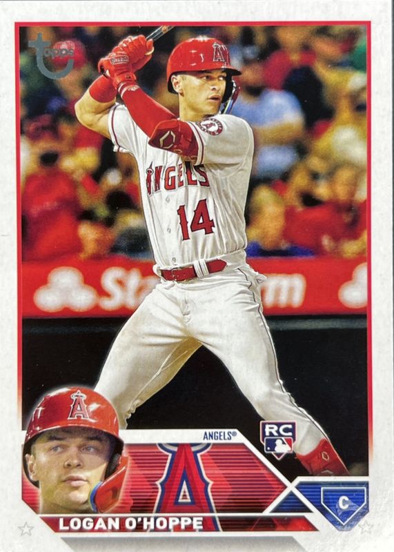 This card is 1 of 20 Logan O'Hoppe's card variations in the 2023 Topps set being tracked by Sports Card Investor, including Base, Gold Foil, Rainbow Foil, Royal Blue, and Gold /2023.