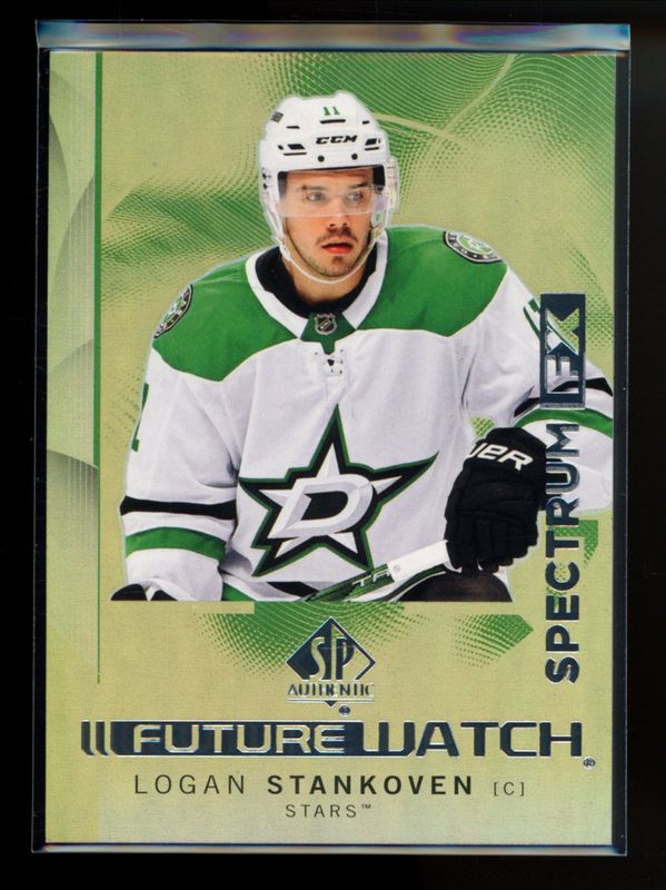 The Logan Stankoven 2024 SP Authentic #S-97 Spectrum FX - Gold Bounty /50 Rookie card is 1 of 45 Logan Stankoven's card variations in the 2024 SP Authentic set being tracked by Sports Card Investor, including Base /999, Auto Mystery Black, Future Watch Acetate, Limited Red, and Limited Blue /399.