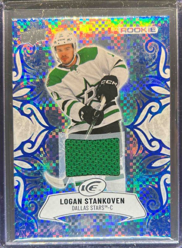 The Logan Stankoven 2024 Upper Deck Ice #101 Jersey Rookie card is 1 of 51 Logan Stankoven's card variations in the 2024 Upper Deck Ice set being tracked by Sports Card Investor, including #242 Base /799, #101 Base /799, #101 Purple, #101 White Snowflake Autographs, and #242 Blue /399.