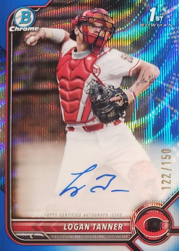 2022 Bowman Draft * Reds LOGAN TANNER CHROME BLUE WAVE REFRACTOR AUTO /150