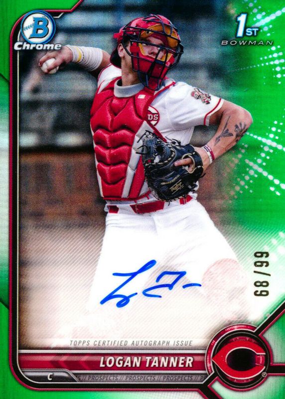 2022 Bowman Chrome Draft Logan Tanner Green Refractor 1st REDS Auto /99 Prospect