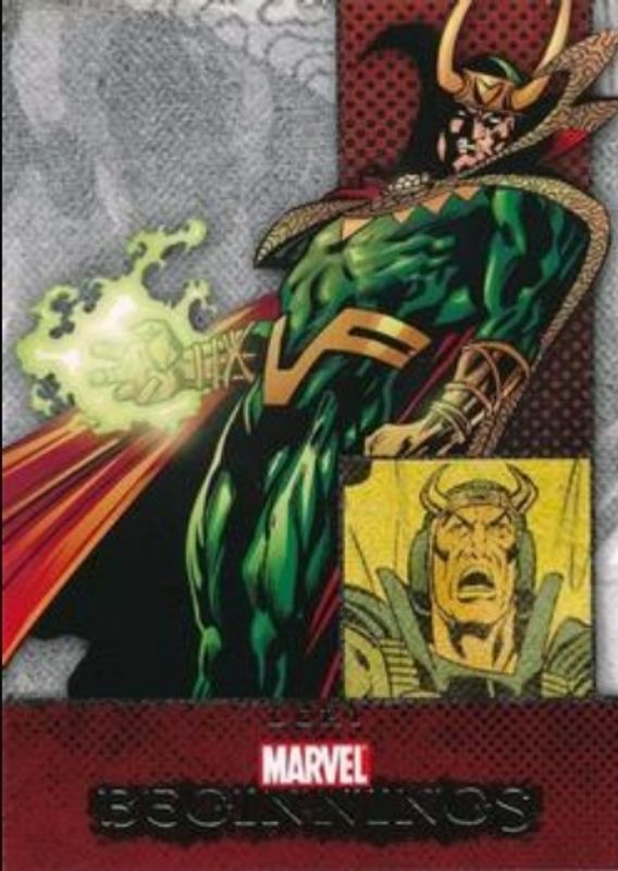 The Loki 2011 Upper Deck Marvel Beginnings Series 1 #32 Base card is 1 of 7 Loki's card variations in the 2011 Upper Deck Marvel Beginnings Series 1 set being tracked by Sports Card Investor, including Printing Plates Black /1, Printing Plates Cyan /1, Printing Plates Magenta /1, Printing Plates Yellow /1, and Marvel Prime Micromotion Foil.