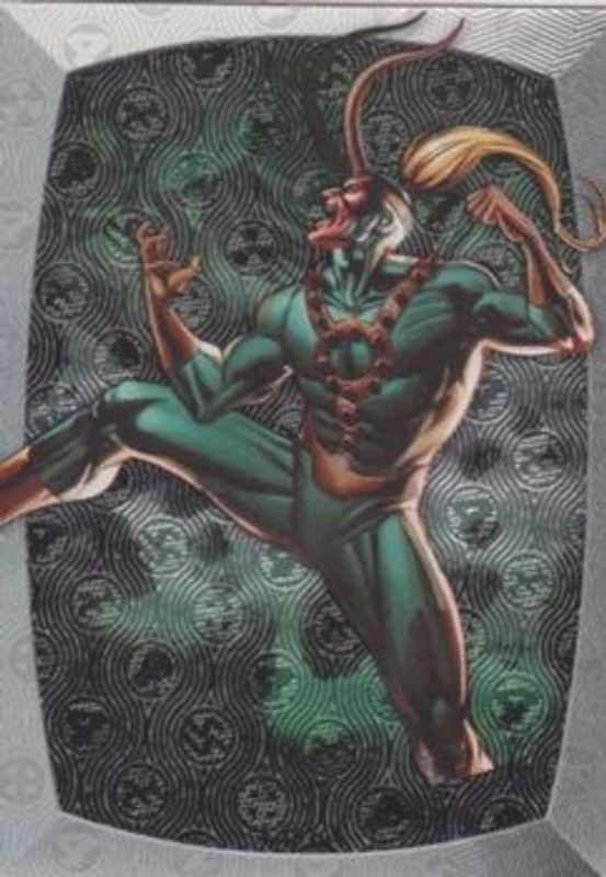 The Loki 2011 Upper Deck Marvel Beginnings Series 1 #M-32 Marvel Prime Micromotion Foil card is 1 of 7 Loki's card variations in the 2011 Upper Deck Marvel Beginnings Series 1 set being tracked by Sports Card Investor, including Base, Printing Plates Black /1, Printing Plates Cyan /1, Printing Plates Magenta /1, and Printing Plates Yellow /1.