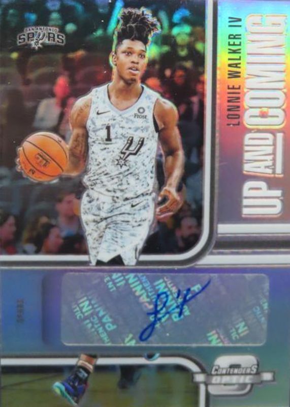 The Lonnie Walker IV 2018 Contenders Optic #UC-LW4 Up and Coming Contenders Autographs /99 Rookie card in Raw condition has not changed in price in the last 30 days and was last sold for $6.00 .