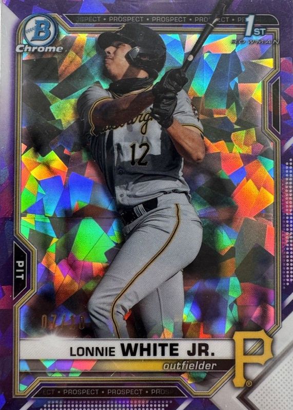 The Lonnie White Jr. 2021 Bowman Draft Sapphire Edition #BDC-28 Chrome - Purple /10 (1st) Rookie card in Raw condition has not changed in price in the last 30 days and was last sold for $3.00 .