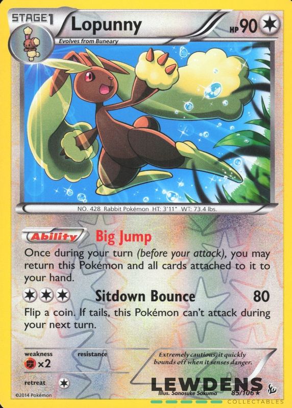 Lopunny 2014 XY: Flashfire #085/106 Reverse Holo RAW TCG (LIGHTLY PLAYED) Price Guide